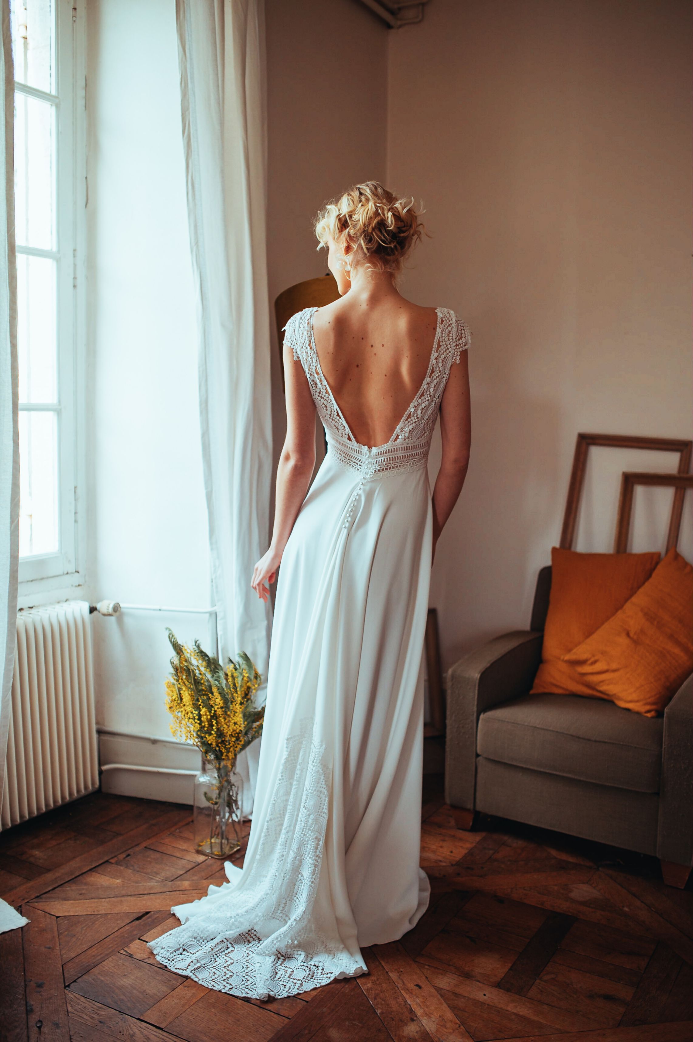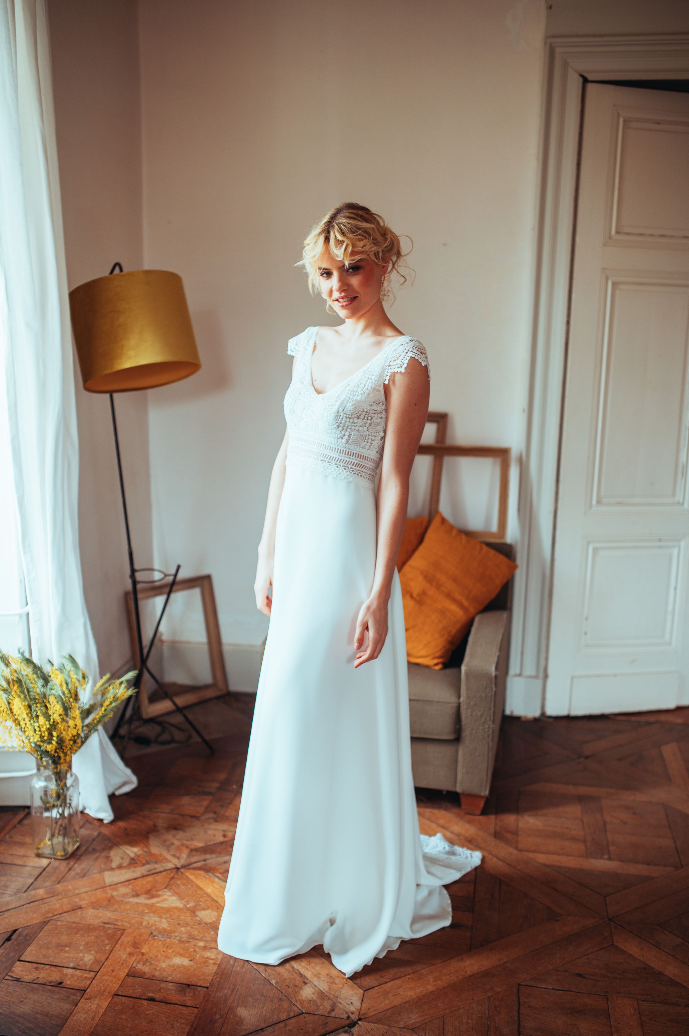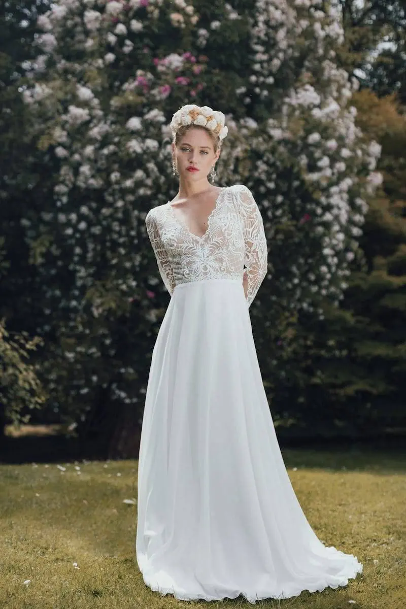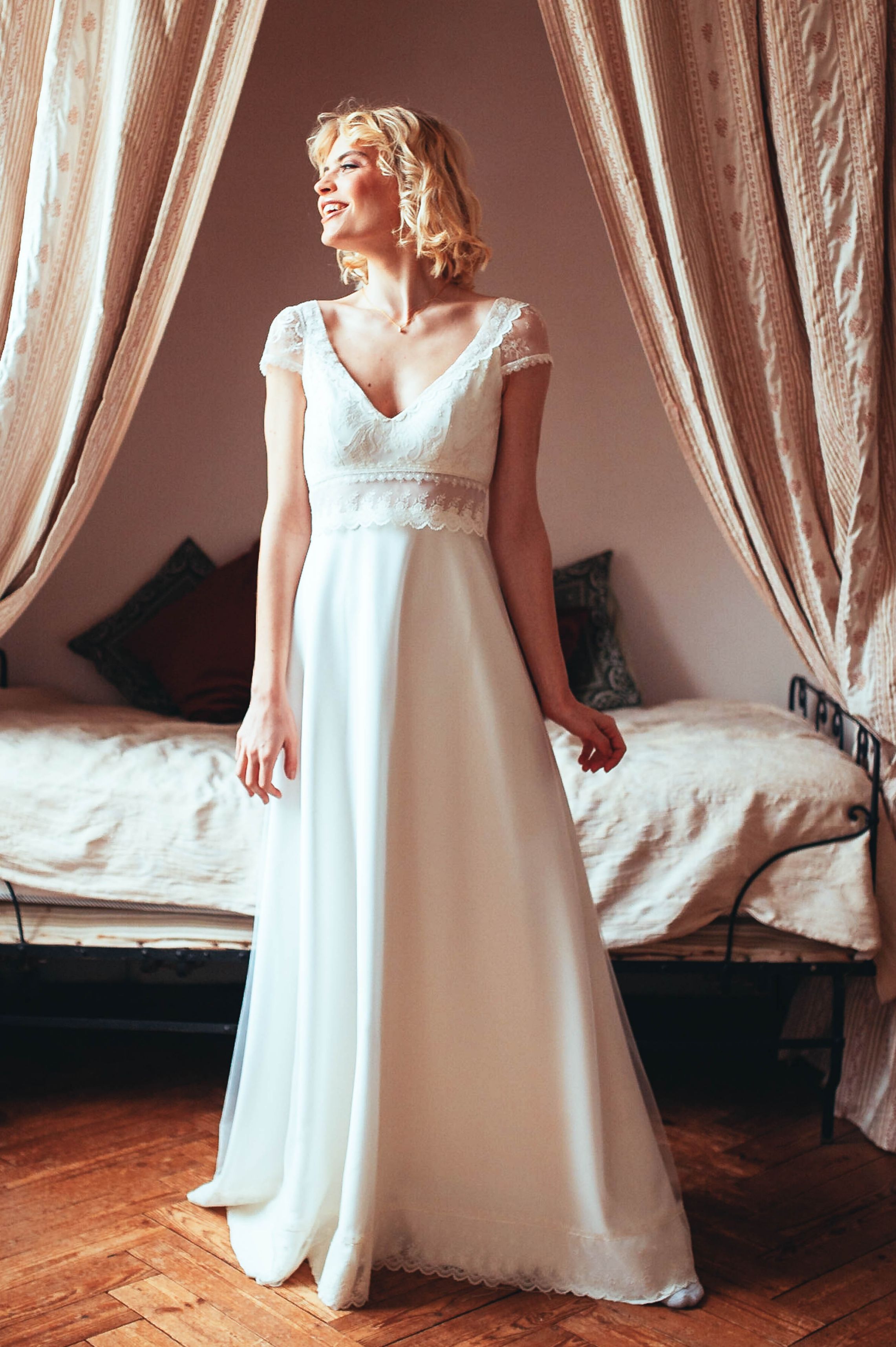 Des robes en mousseline de soie, en dentelle de Calais, des Robes de Mariée Fluides, Bohèmes…