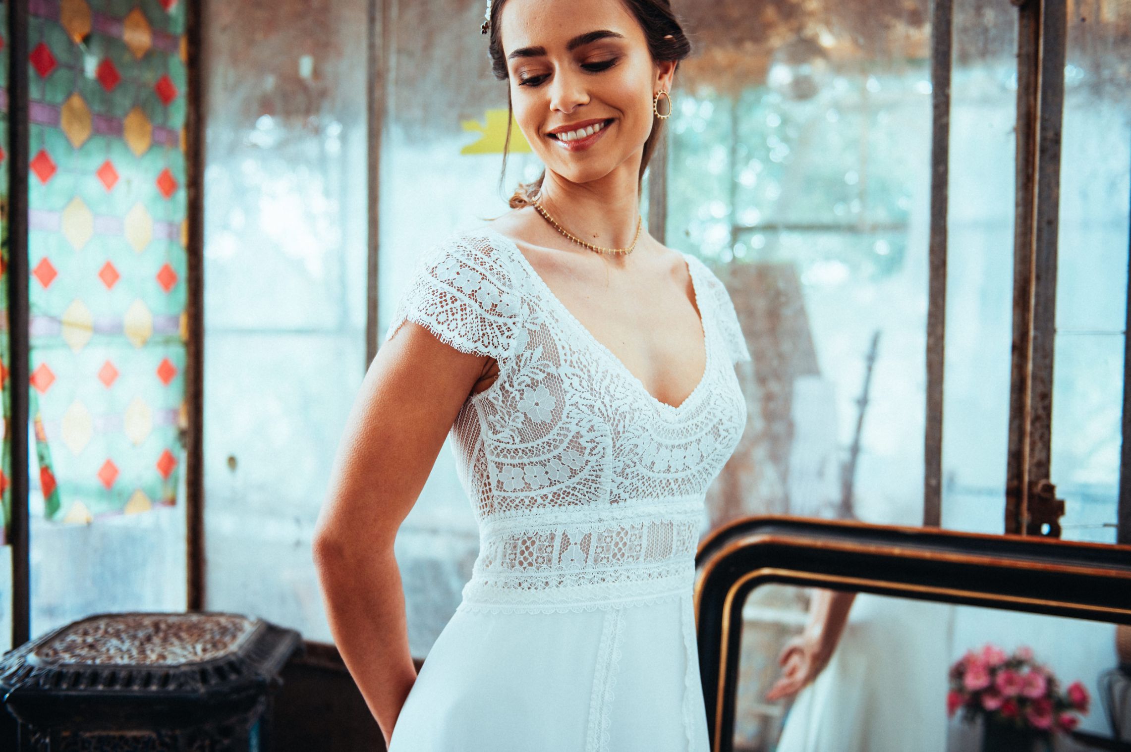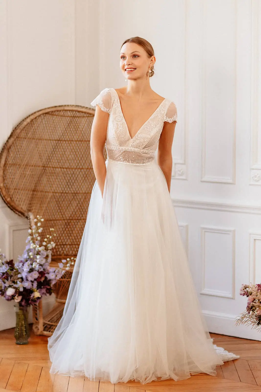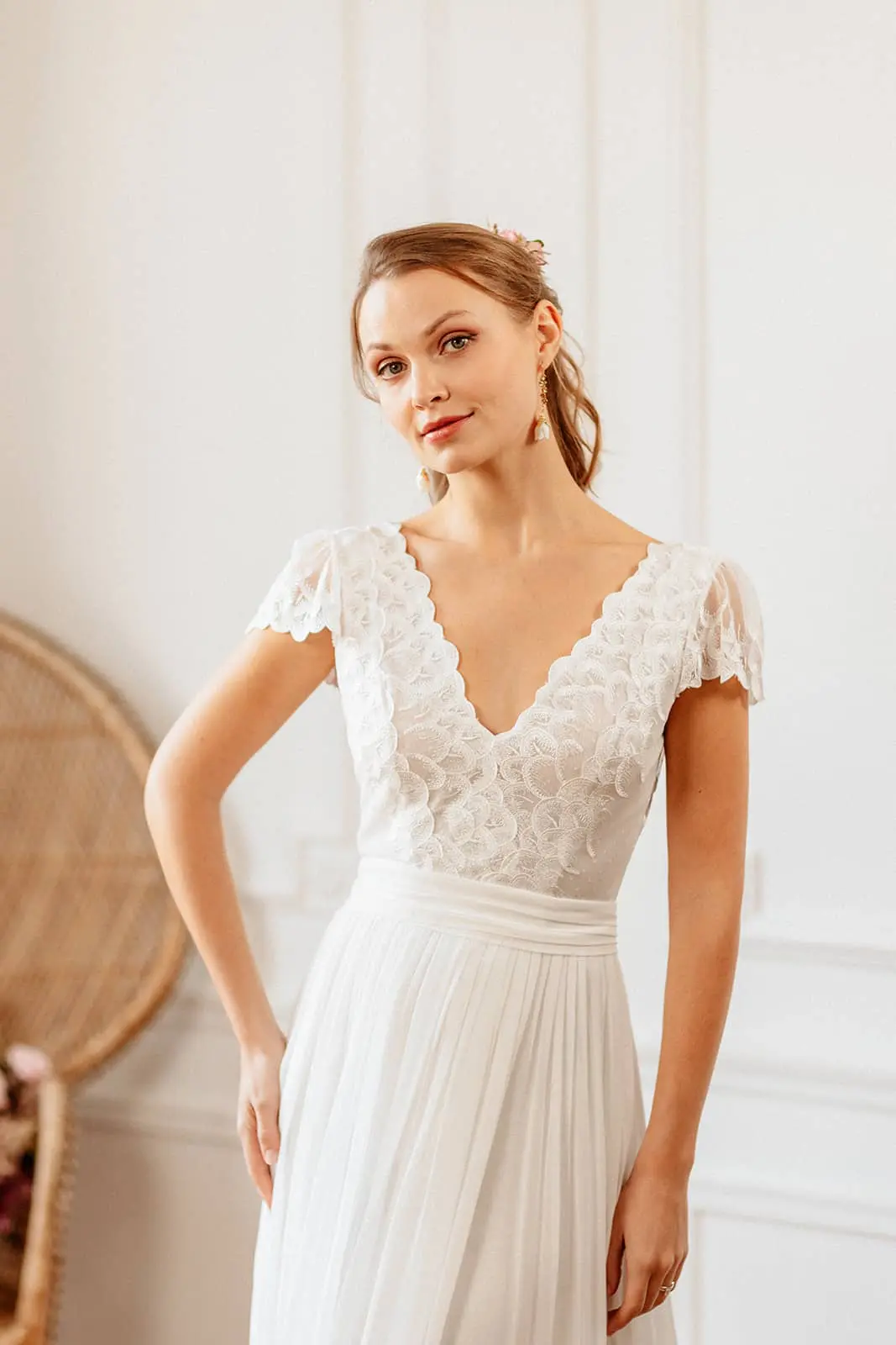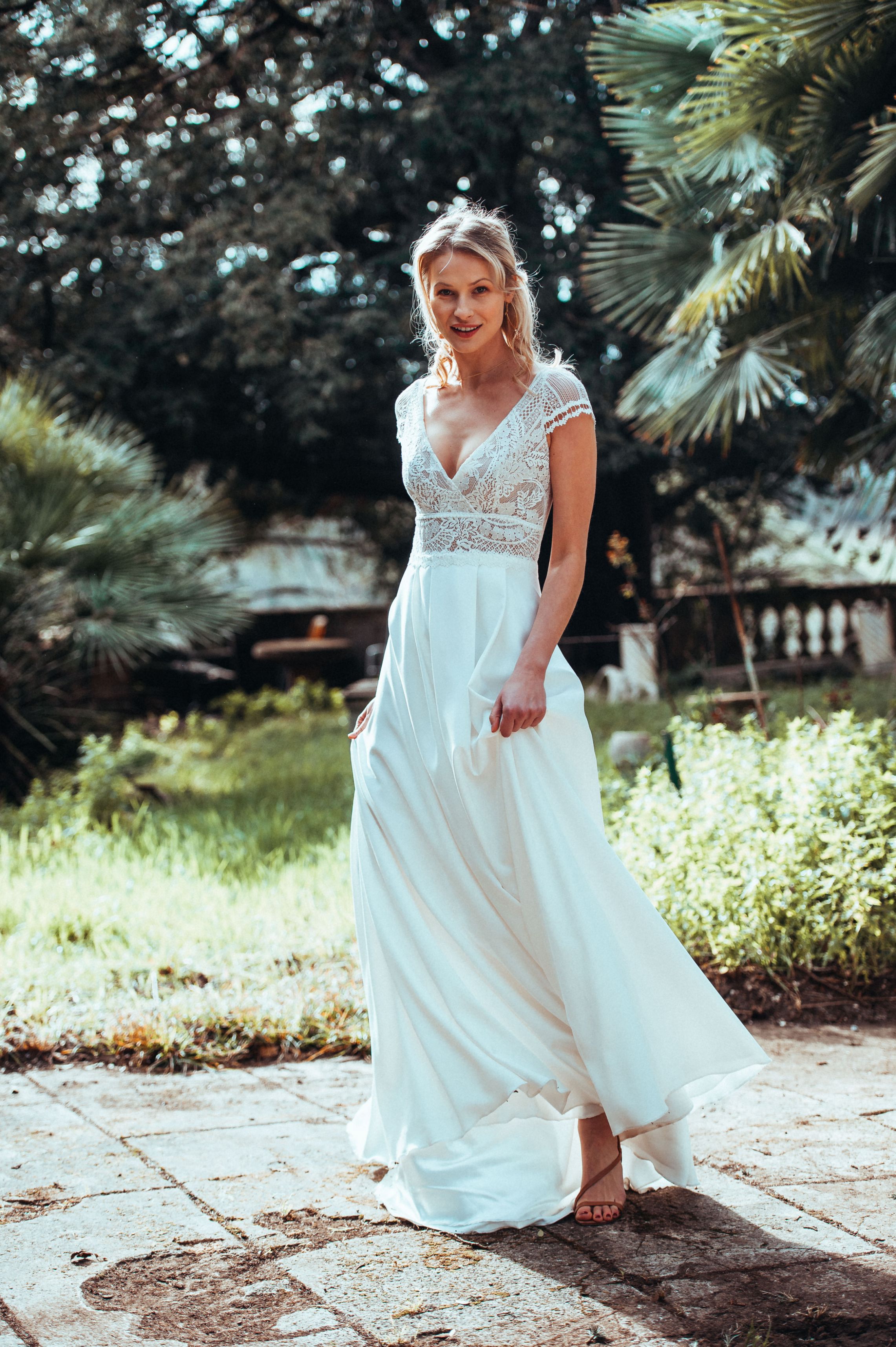 Des robes en mousseline de soie, en dentelle de Calais, des Robes de Mariée Fluides, Bohèmes…