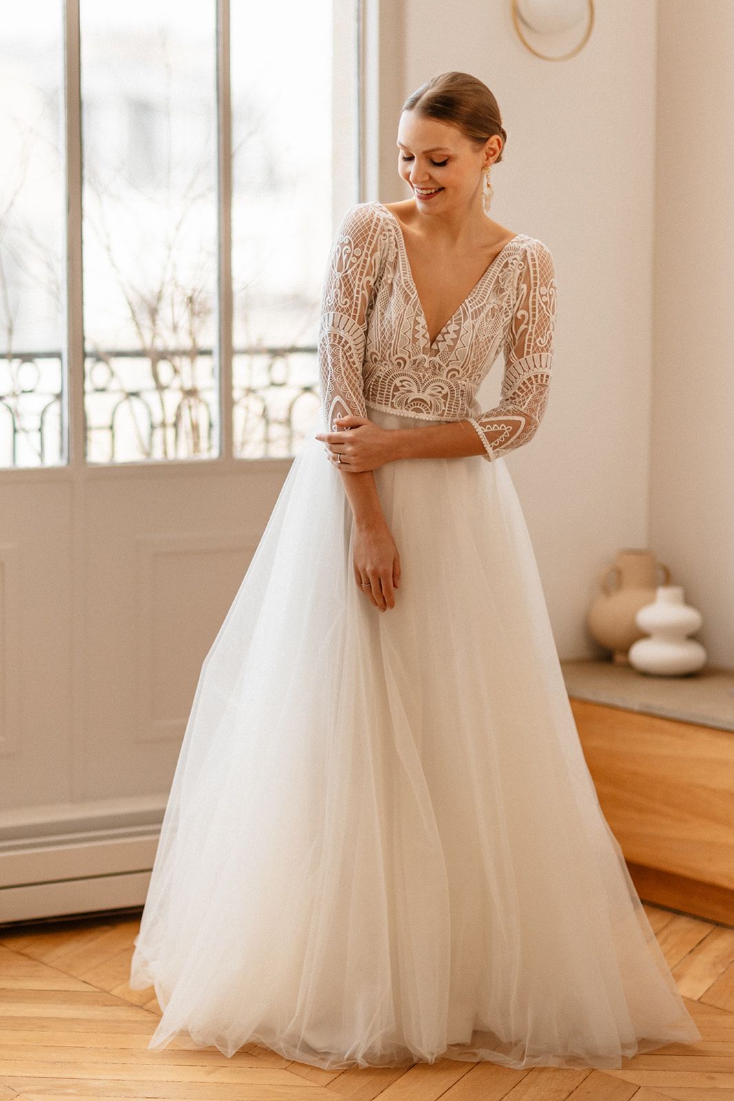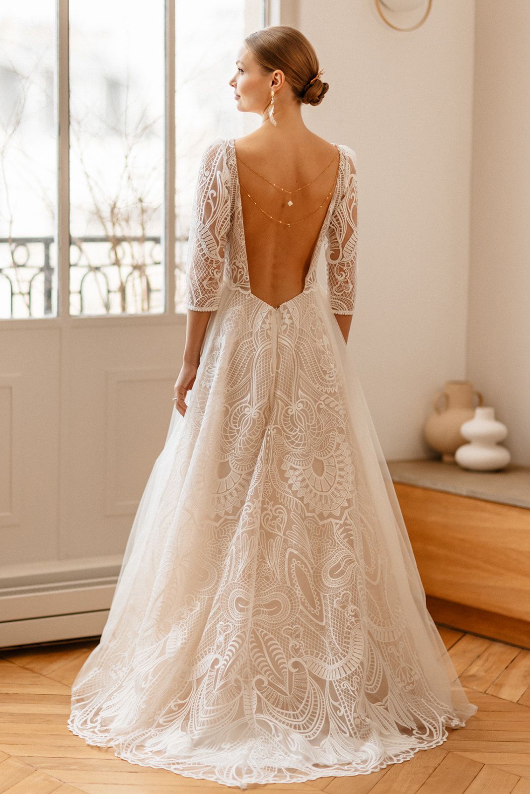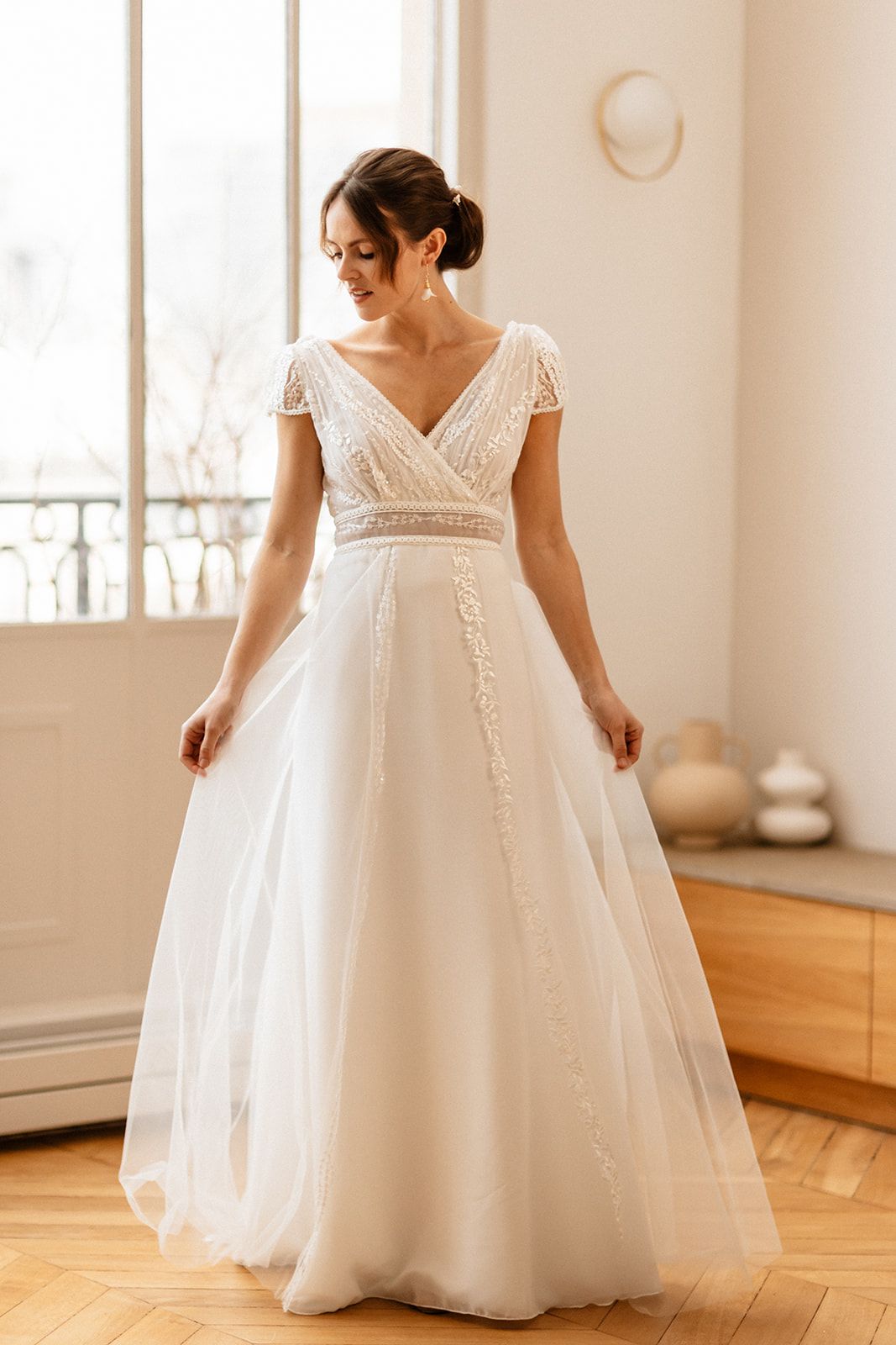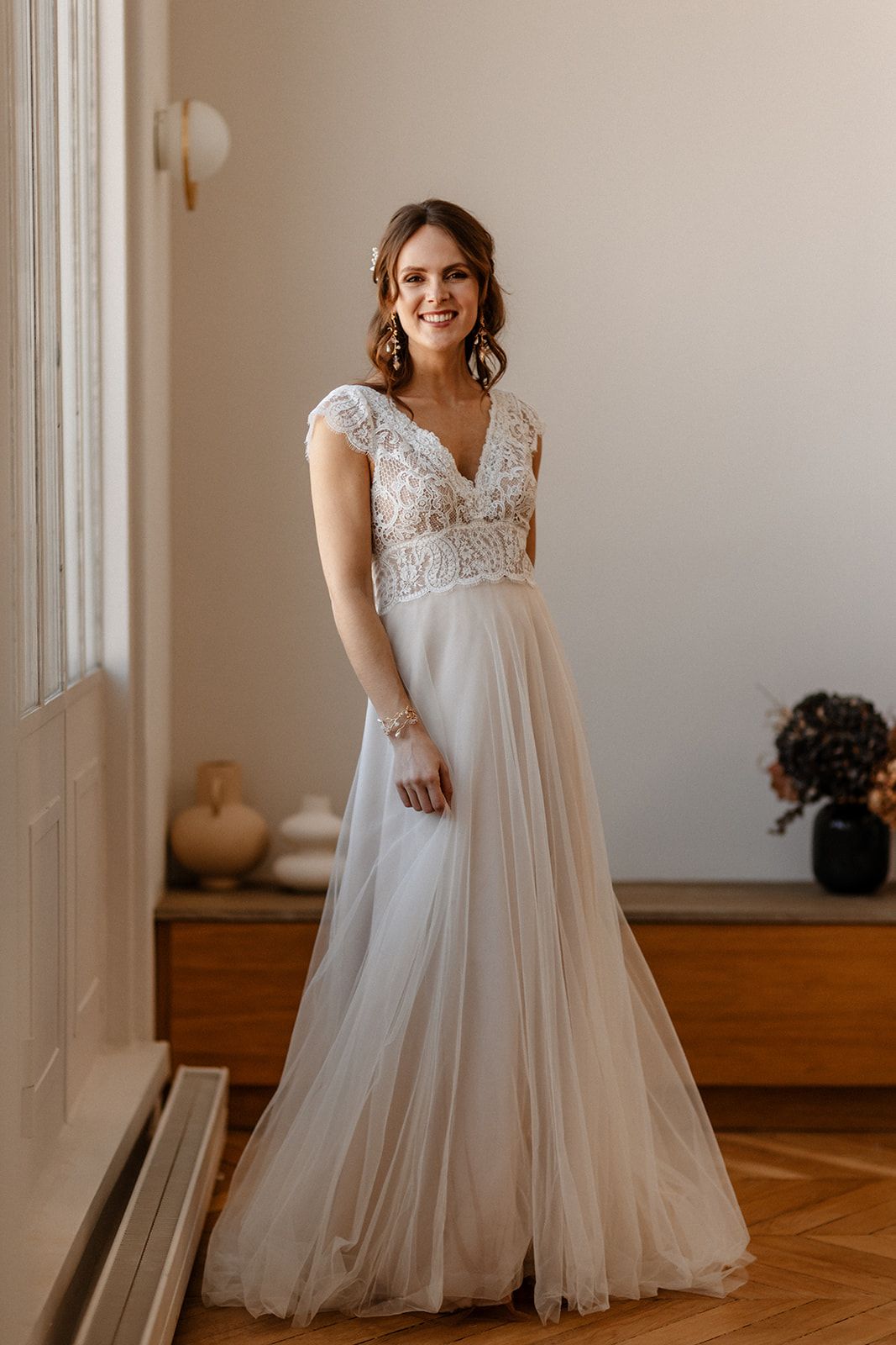 Des robes en mousseline de soie, en dentelle de Calais, des Robes de Mariée Fluides, Bohèmes…