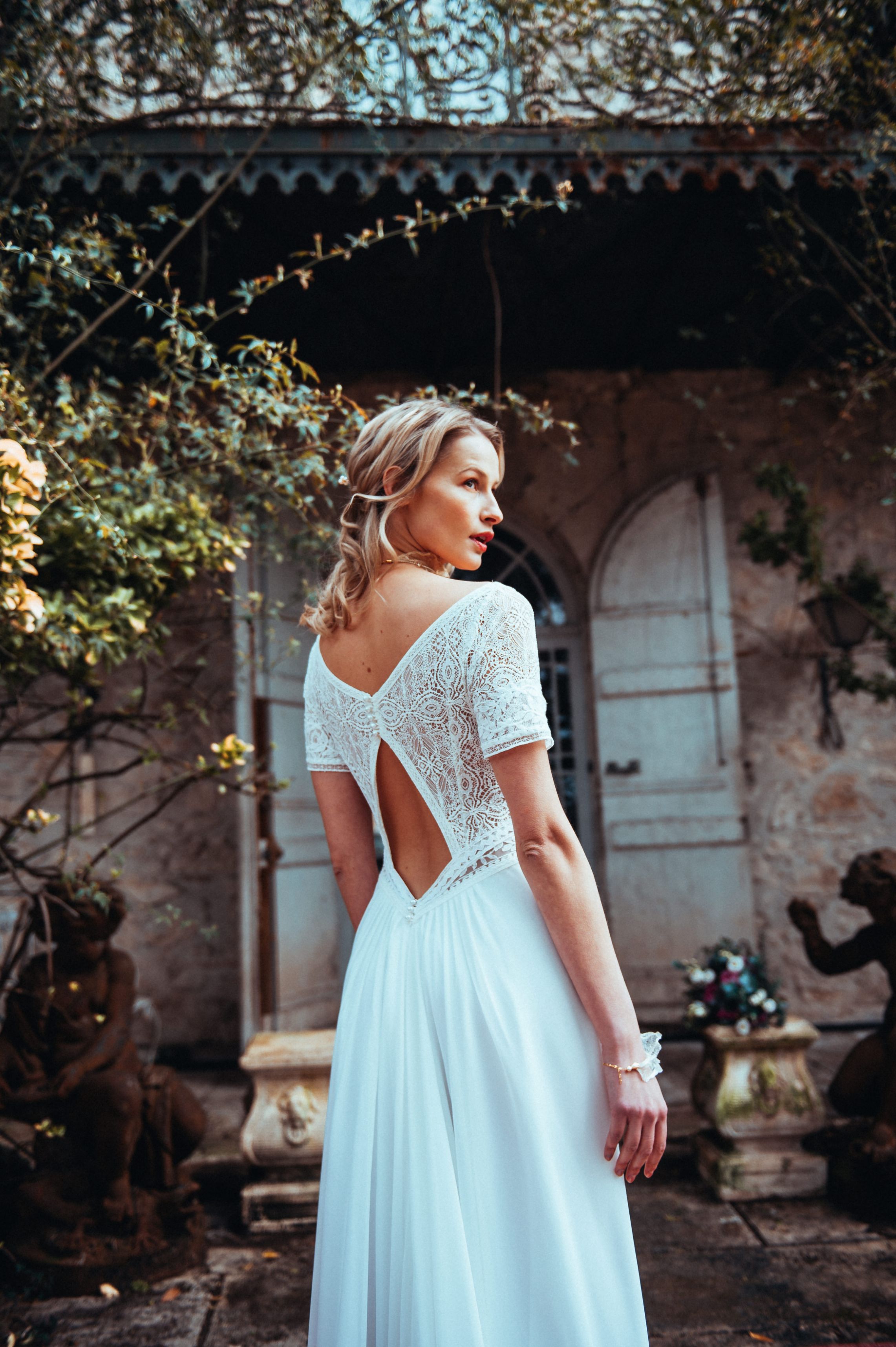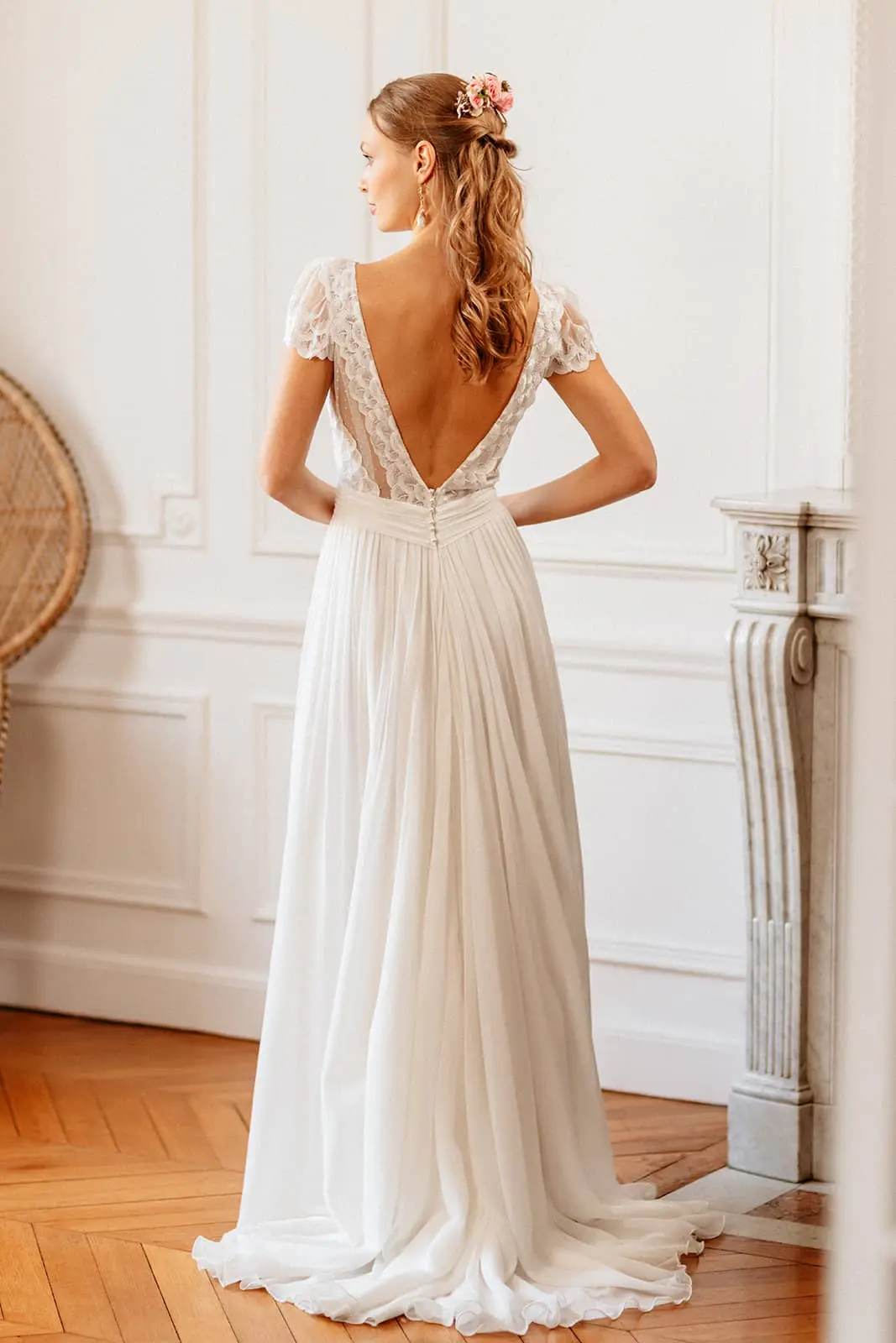 Des robes en mousseline de soie, en dentelle de Calais, des Robes de Mariée Fluides, Bohèmes…